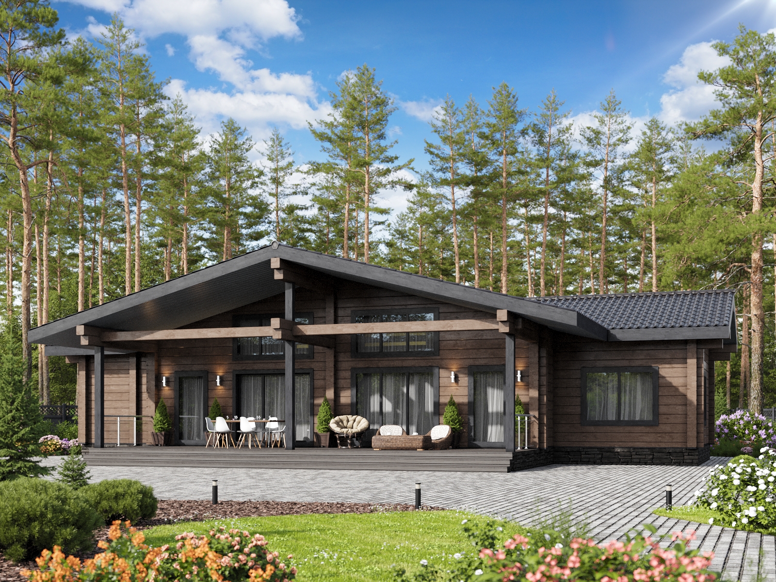 Дом в стиле шале из клееного бруса