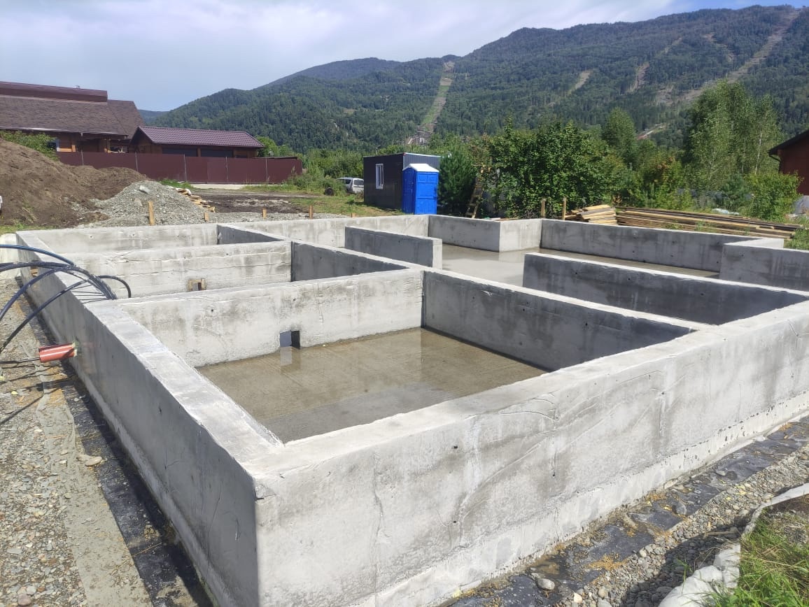 Завершили заливку фундамента. Это полностью индивидуальный проект нашего заказчика. Общая площадь двухэтажного дома составляет 231,23 квадратных метров.