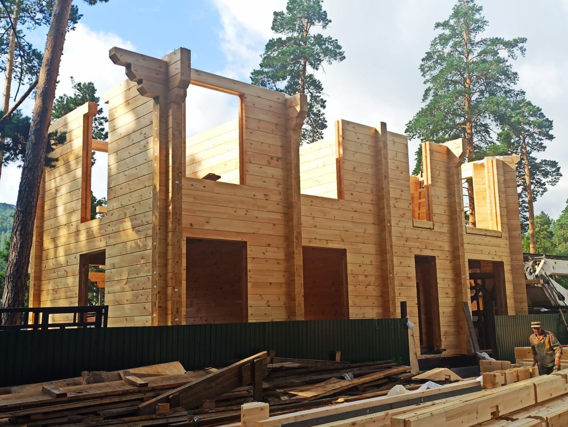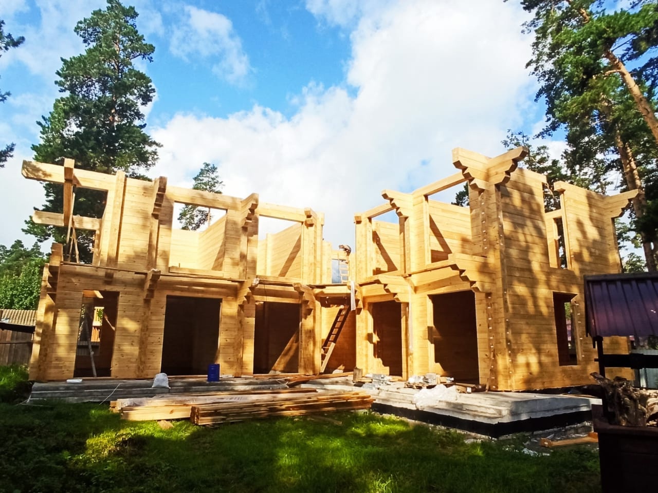 Наша бригада выполняет работы по сборке сруба. Это полностью индивидуальный проект нашего заказчика. Общая площадь гостиницы составляет 310,99 м2.