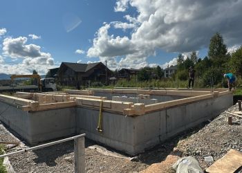 Завершили заливку фундамента. Это полностью индивидуальный проект нашего заказчика. Общая площадь двухэтажного дома составляет 231,23 квадратных метров.