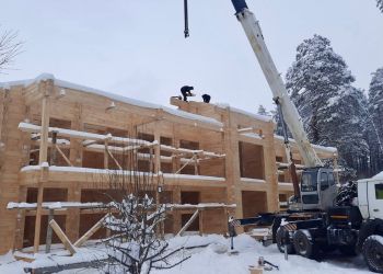 Наша бригада завершила сборку сруба. Теперь мы приступили к монтажу стропильной системы. Дом построен из клееного бруса из сосны и кедра собственного производства с сечением 245х185 мм. Общая площадь банного комплекса составляет 262 квадратных метра.