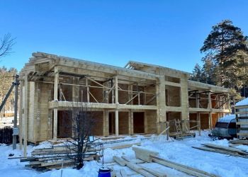 Мы завершаем монтаж сруба дома. В строительстве используется клееный брус собственного производства из сосны с сечением 185х205 мм. Индивидуальный проект нашего заказчика. Двухэтажный дом общей площадью 510 квадратных метров.