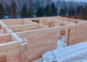 Наша бригада приступила к монтажу сруба дома. В строительстве мы используем клееный брус собственного производства из сосны с сечением 185х205 мм. Полностью индивидуальный проект нашего заказчика. Двухэтажный дом общей площадью 510 квадратных метров.