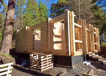 Площадь дома составляет 354 квадратных метра. Всего будет построено 3 здания из клееного бруса по индивидуальному проекту нашего заказчика. В строительстве мы используем клееный брус собственного производства из сосны с сечением 185х285 мм.