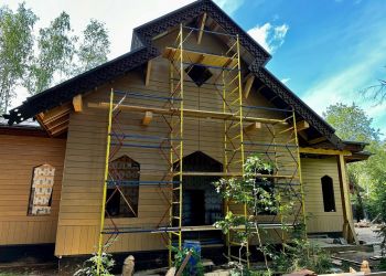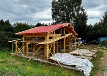 Сейчас наша бригада приступила к монтажу кровельного пирога.Общая площадь беседки составляет 35 квадратных метров. В строительстве используем клееный брус из сосны.