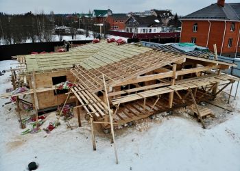 Завершили монтаж стропильной системы и сейчас приступили к устройству кровельного пирогаЗа основу взят наш типовой проект Анси, с индивидуальными изменениямиПлощадь дома составит 195 м2.В строительстве мы используем клеёный брус собственного производства из сосны 205х185 мм.