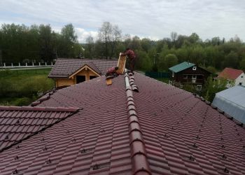 Мы продолжаем строительство дачного комплекса. Наша бригада завершает работы по монтажу финишного покрытия кровли. Дом построен из клееного бруса собственного производства из кедра сечением 245х270 мм. Это индивидуальный проект нашего заказчика. Общая площадь дома составляет 256,38 квадратных метров.