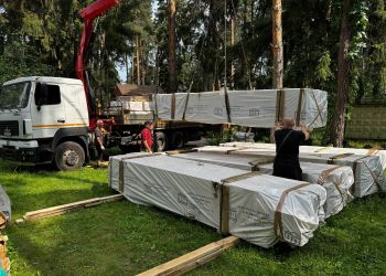Наши бригада выполнила разгрузку первой партии домокомплекта для сборки сруба дома. Это полностью индивидуальный проект нашего заказчика. Общая площадь дома составляет 186,85 квадратных метров. В строительстве мы будем использовать клееный брус собственного производства из сосны сечением 205х185 мм.