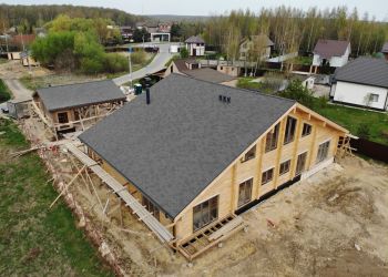 Сейчас наша бригада завершила монтаж финишного покрытия кровли. Также приступили к внешнему окрашиванию. В строительстве мы использовали клееный брус собственного производства из сосны сечением 205х270 мм. Площадь дома составляет 424,61 м2 и площадь технического помещения с навесом 71,9 м2.