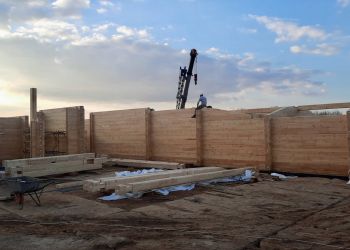 Мы продолжаем строительство дачного комплекса. Сейчас наша бригада приступила к сборке сруба дома. Дом строится из клееного бруса собственного производства из кедра сечением 245х270 мм. Это индивидуальный проект нашего заказчика. Общая площадь дома составляет 256,38 квадратных метров.