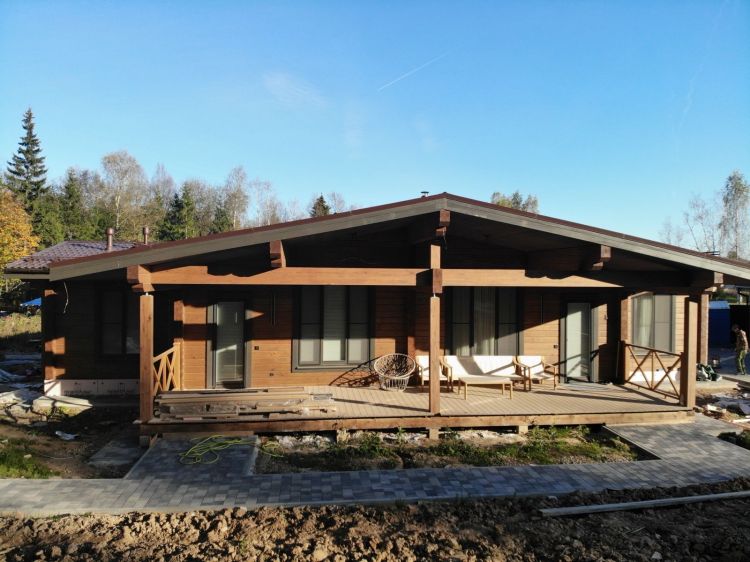 Клееный брус — современный, эстетичный и безопасный материал. Благодаря высокотехнологичности его производства — время на монтаж дома сокращается, а также появляется возможность круглогодичного строительства, чем не могут похвастаться другие технологии.