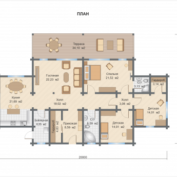 Также изюминкой данного проекта является большая терраса - 34,10 м2.