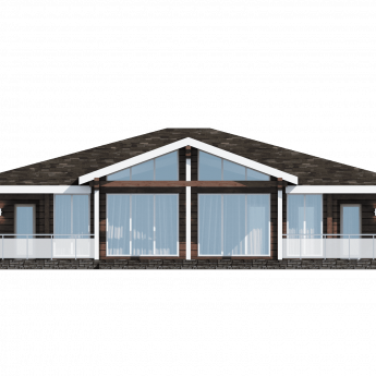 По проекту "Дюссельдорф" - одноэтажное здание, оснащенное двумя террасами. Планировка предполагает три спальни, которые при необходимости можно переоборудовать под любые другие необходимые помещения, и просторную кухню-гостиную с выходом на террасу.