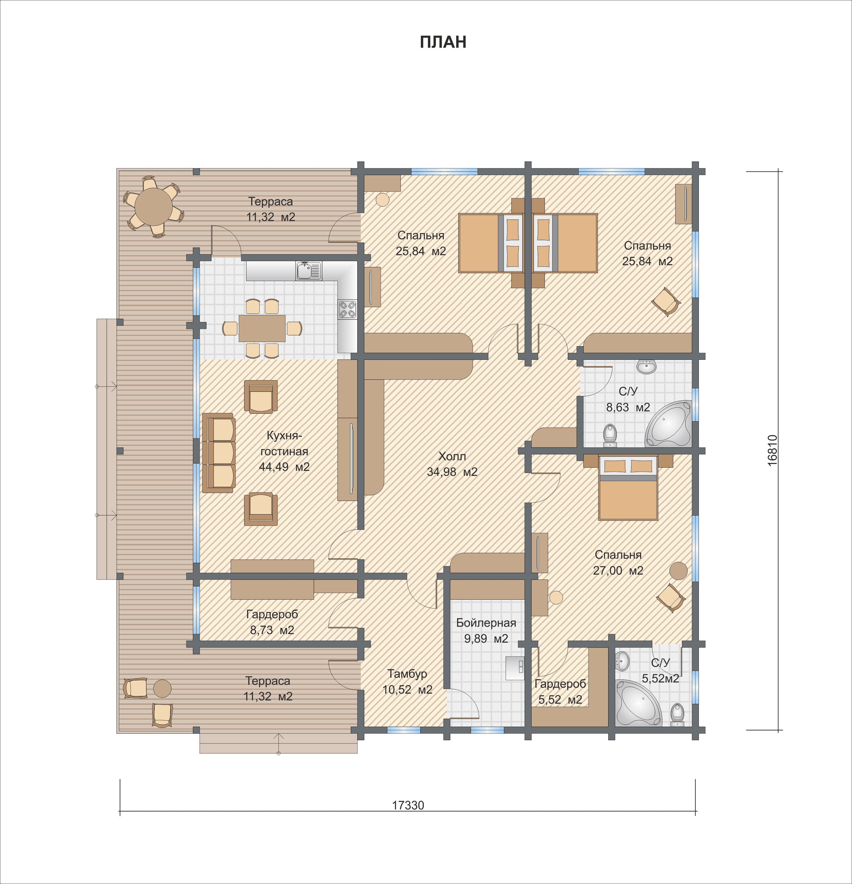 Базовые планировки Дом из клееного бруса Дюссельдорф 1