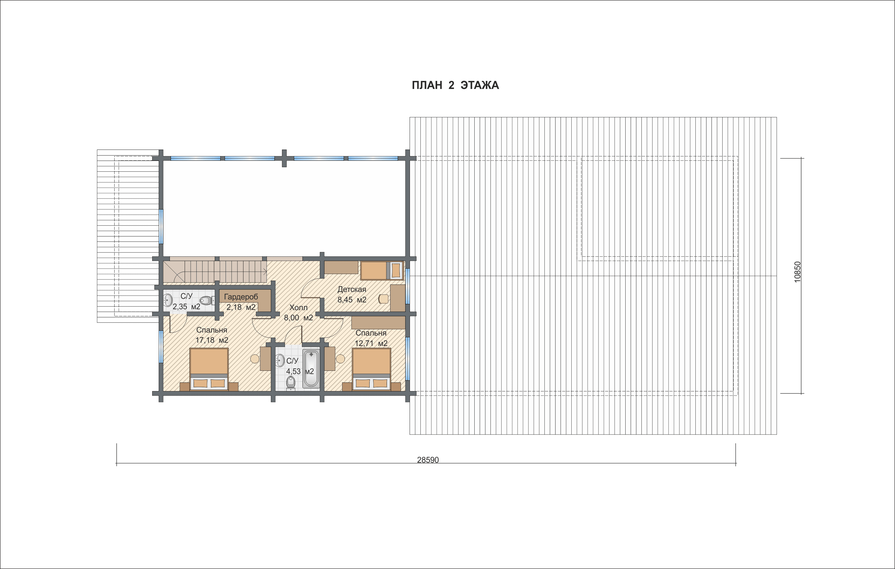 По проекту в здании есть 3 спальни на втором этаже, которые можно переоборудовать под любые другие помещения.