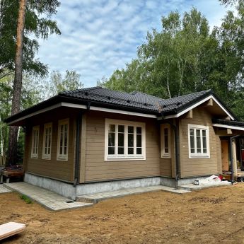 Выбрали типовой проект, но внесли небольшие изменения. Понравилось, что компания пошла навстречу и адаптировала проект под наши пожелания. Все работы выполнены в срок, претензий к качеству нет. Отдельное спасибо за помощь в планировке участка.
