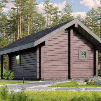 Модульный дом из клееного бруса. Идеальное решение для коммерческих застроек. Общая площадь проекта - 38,68 квадратных метров. Крыльцо - 13,76 квадратных метра, комната отдыха/кухня - 21,92 квадратных метра и санузел 3 квадратных метра.