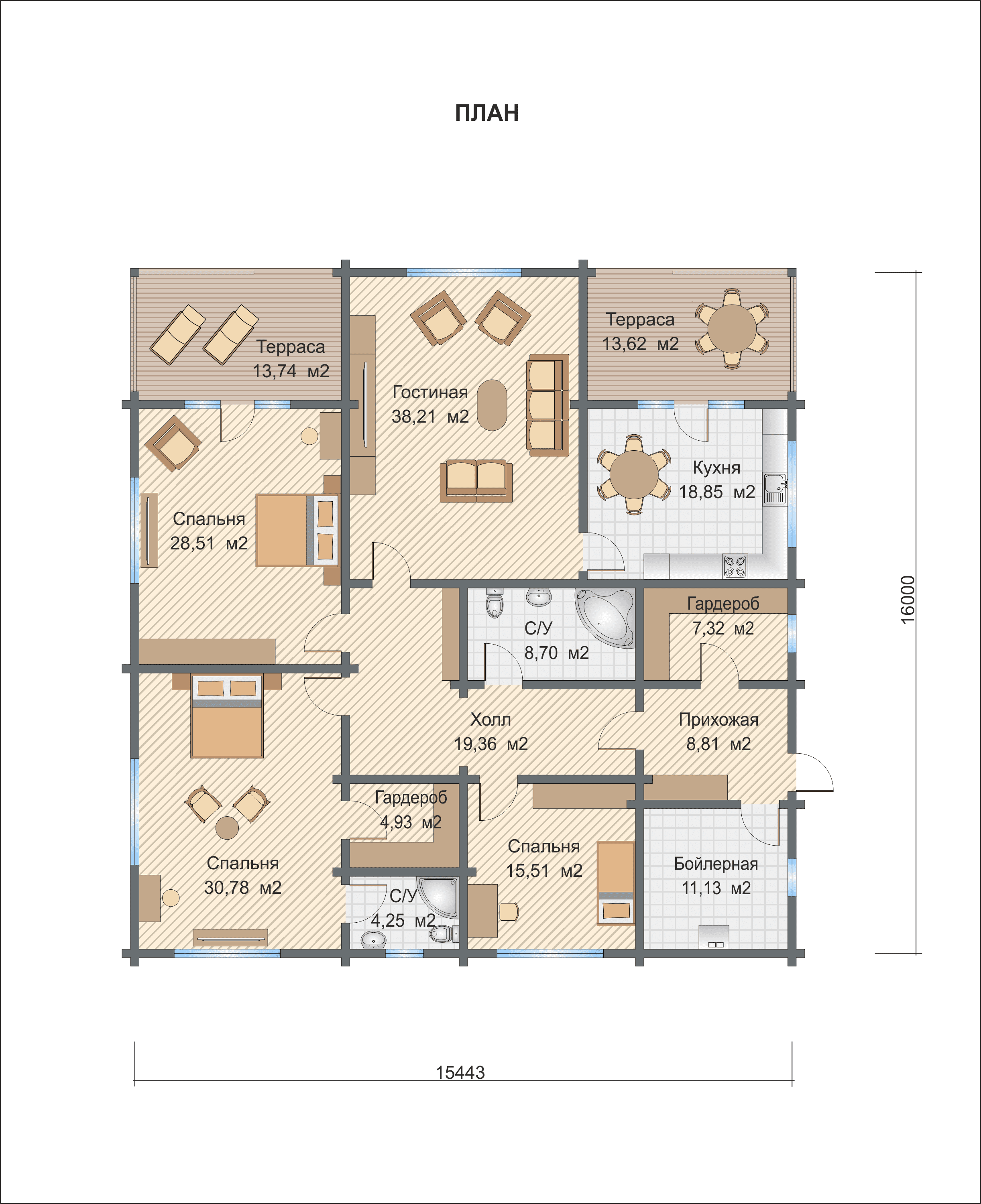 Базовые планировки Дом из клееного бруса Штутгарт 1
