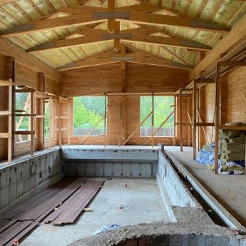 Дом с бассейном строится по индивидуальному проекту нашего заказчика.