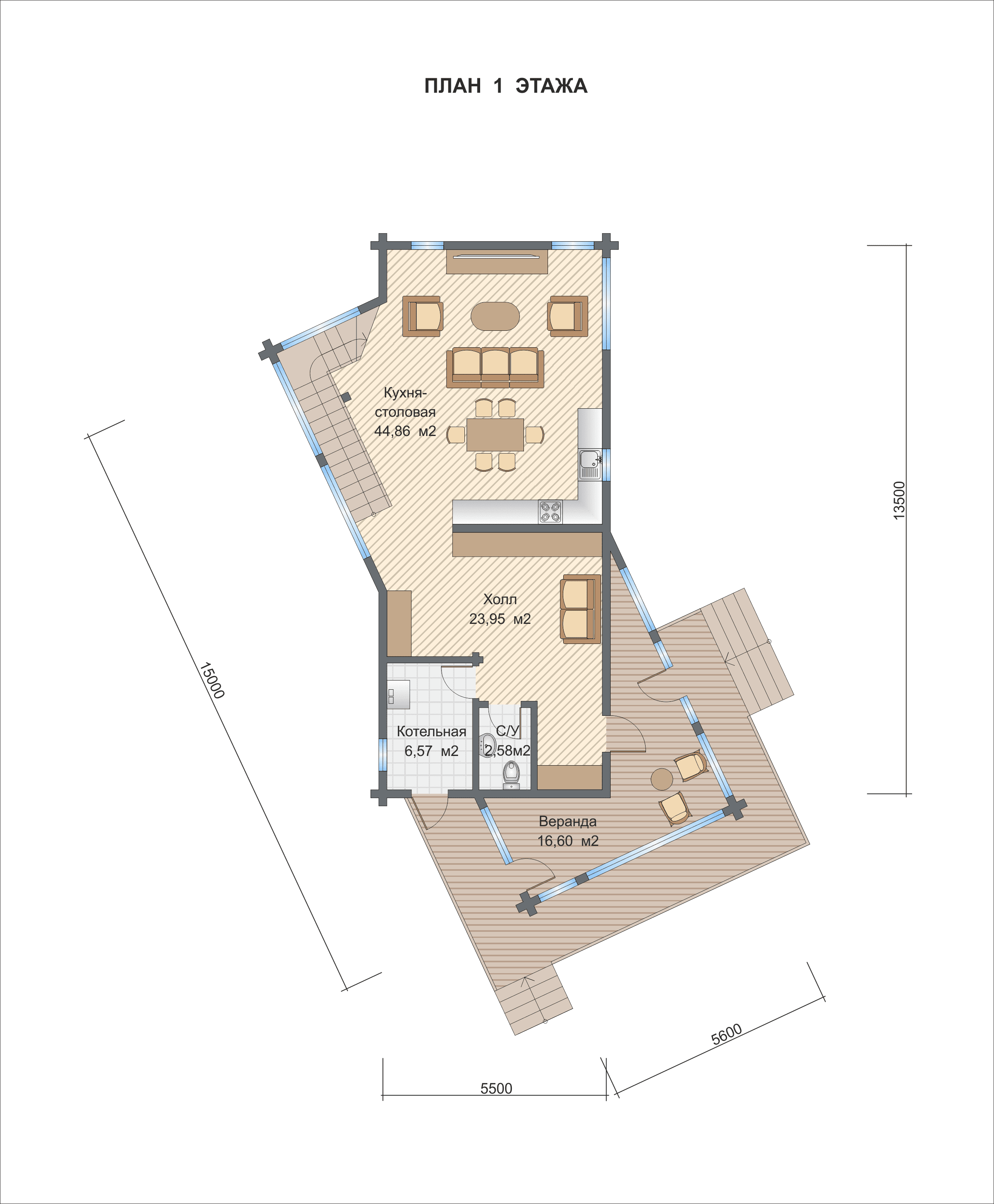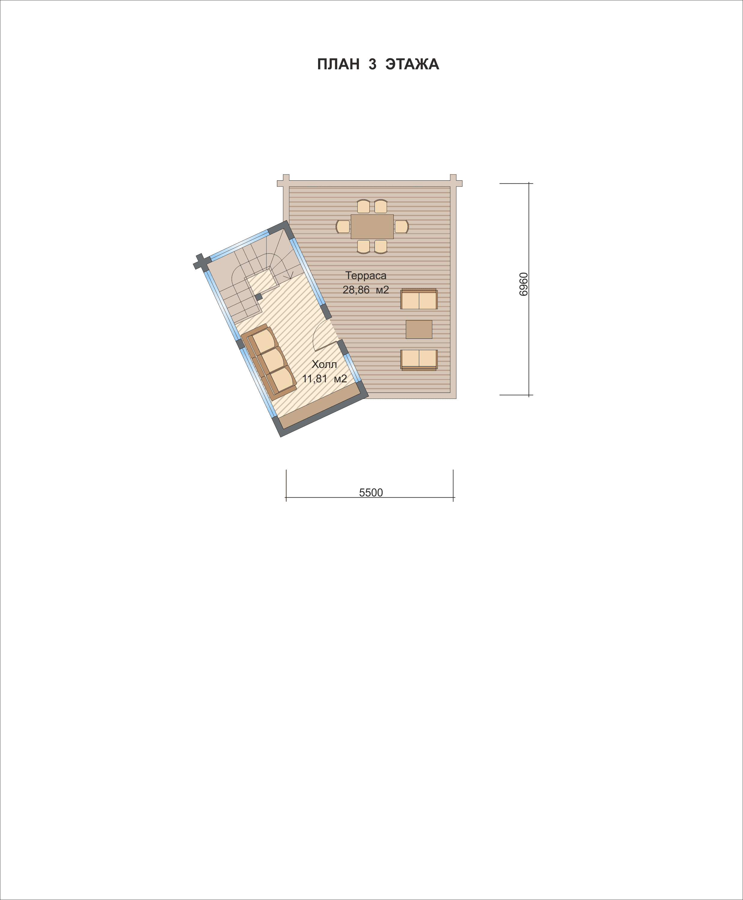 Полезная площадь проекта "Довиль" - 213 кв.м. По проекту "Довиль" - треххэтажное здание, которое также оснащено верандой. Площадь веранды - 16,6 кв.м.