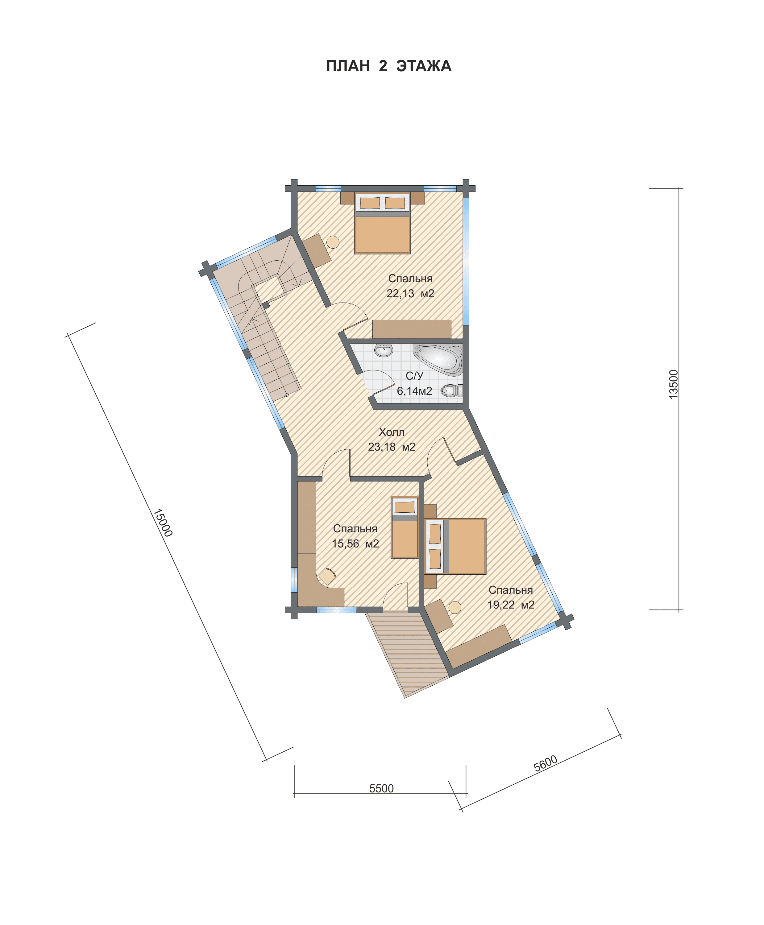 По проекту в здании есть 3 спальни на втором этаже, которые можно переоборудовать под другие любые необходимые помещения.