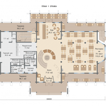 Базовые планировки Дом из клееного бруса Ресторанный комплекс на Алтае 2
