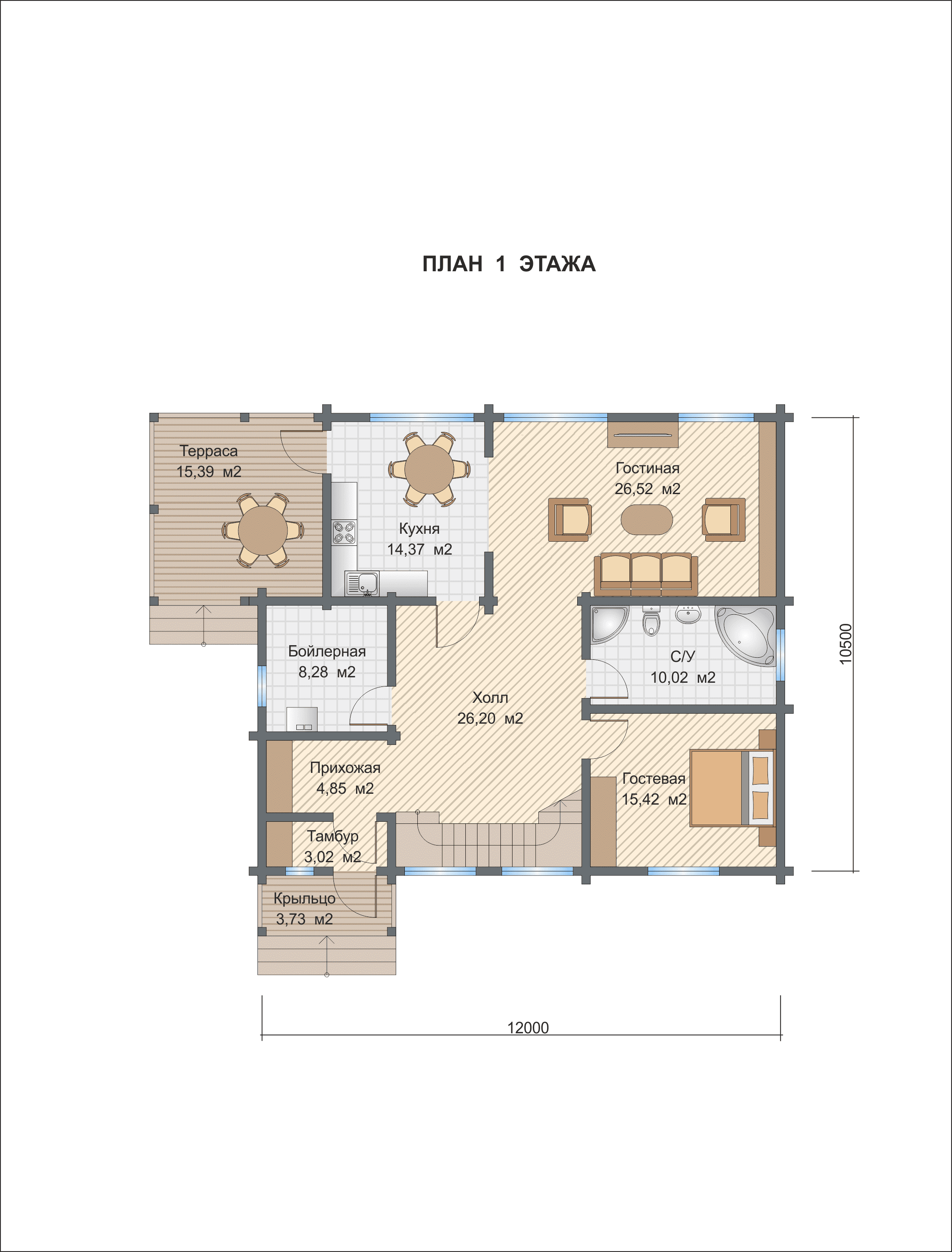 Базовые планировки Дом из клееного бруса Сакраменто 1
