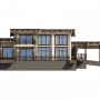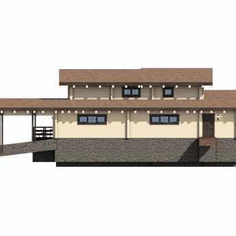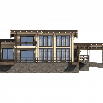 Полезная площадь проекта "Шату" - 417 кв.м. По проекту "Шату" - двухэтажное здание, которое также оснащено крыльцом и террасой. Площадь крыльца составляет - 8,25 кв.м., площадь террасы - 65,23 кв.м.