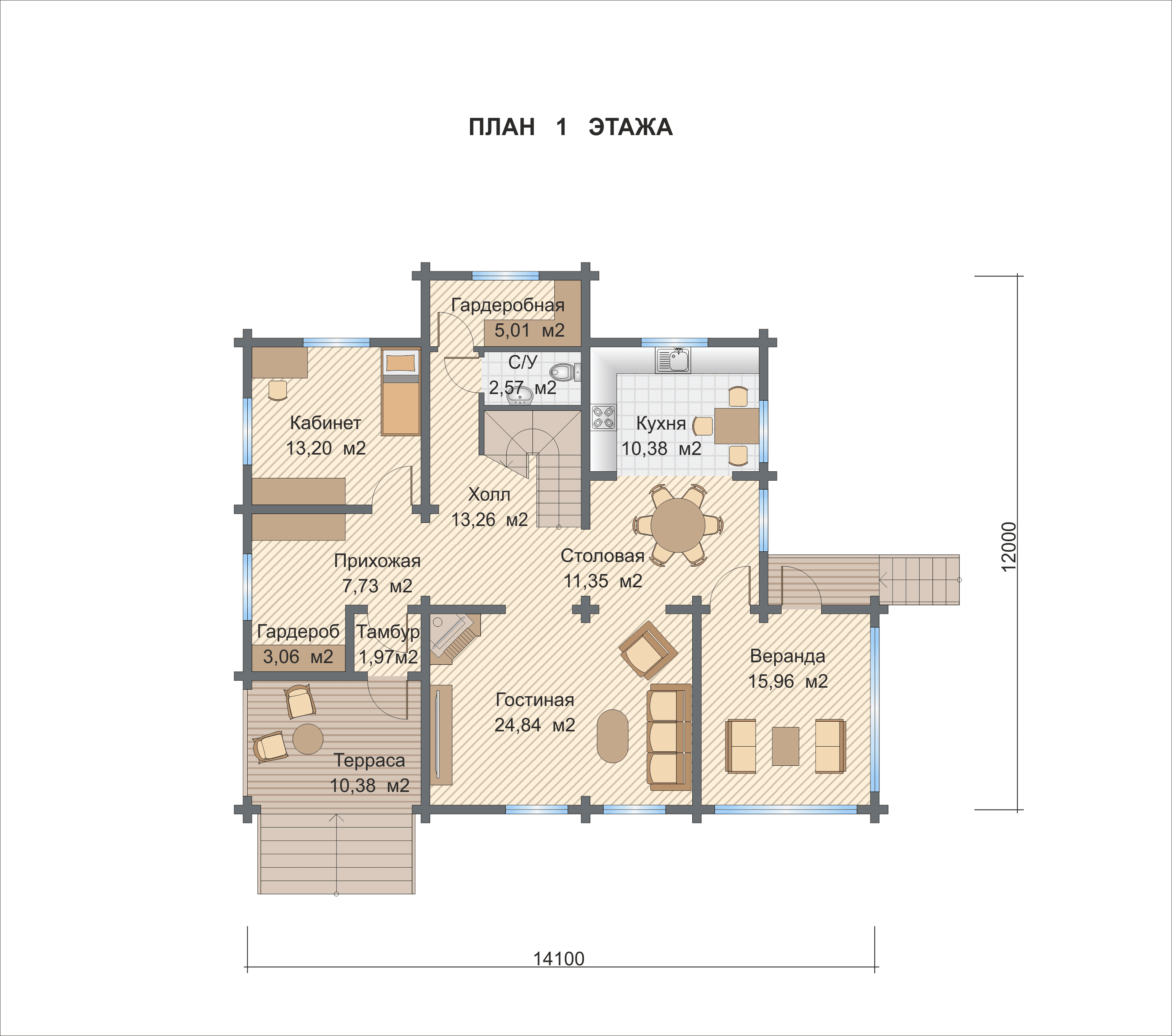 Полезная площадь проект «Онгудай» - 198 кв.м. По проекту «Онгудай» - двухэтажное здание, которое оснащено большой террасой – 10,38 кв.м.