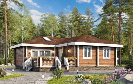 Полезная площадь проекта "Гринвуд" - 71 кв.м. По проекту "Гринвуд" - одноэтажное здание, которое также оснащено террасой. Площадь террасы – 24,59 кв.м.