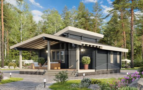 Полезная площадь проекта "Санди" - 102,05 кв.м. По проекту "Санди" - одноэтажное здание, которое также оснащено  и террасой. Площадь террасы - 23,11 кв.м.