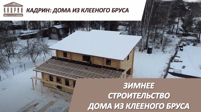 Зимняя видеосъемка строительной площадки в Тверской области. В процессе строительство дома из клееного бруса из алтайской сосны.